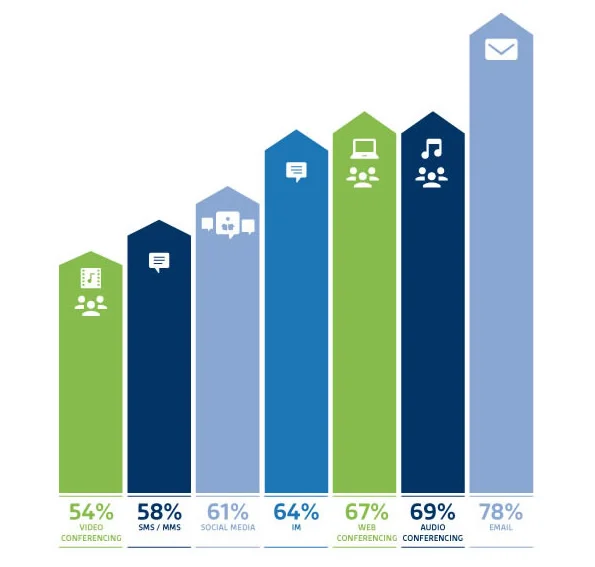 In 2009, Gartner predicted that 40% of knowledge workers would use multifunctional devices to communicate by 2014. As these graphs show, ‘smart’ workers are increasingly using a combination of headsets and UC software to handle calls between landlines, mobiles and PCs.